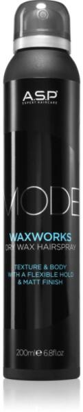 ASP MODE Wax Works, 200 ml, Styling unisex, A minőségi ASP MODE hajviasz tökéletesen tartja a frizurát és könnyen alkalmazható. Ráadásul hosszan tartó hatása szinte meglepő. Tulajdonságok: természetesen fixál matt hatás minden tetszőleges stílusú és formájú frizurát készre formáz egyszerű alkalmazás Használata: Használat előtt alaposan rázza fel. Vigye fel a nedves hajra és végezze el a kívánt hajformázást.