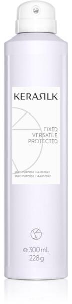 KERASILK Styling Multi-Purpose Hairspray, 300 ml, Hő elleni hajvédelem nőknek, A kiváló KERASILK Styling Multi-Purpose Hairspray hajlakk gondoskodik a végső hajápolásról és meghosszabbítja a frizura tartósságát. Erősíti és hosszú időre rögzíti a frizurát, legyen az bármilyen összetett, és maximális kontrollt biztosít a haj felett. Biztos lehet benne, hogy minden hajszál a helyén marad, és védve lesz a külső hatásoktól, például a széltől és a páratartalomtól. Tulajdonságok: minden hajtípust és frizurát erősen rögzít vitalitást és fényt ad a hajnak a haj hőkezelése során hatékony védelmet nyújt megakadályozza a haj kreppesedését Összetétel: szulfátmentes vegán termék Használata: Száraz hajra használja.