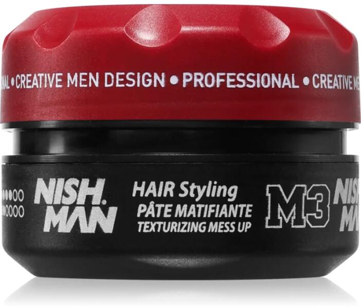 Nish Man M3, 100 ml, Styling férfiaknak, A minőségi Nish Man M3 hajformázó készítmény a haja mindennapi formázásának nélkülözhetetlen segítségévé válik. Tulajdonságok: a kívánt formában fixálja a haját közepesen erős fixálás könnyebbé teszi a hajformázást nem nehezíti el a hajat matt megjelenést kölcsönöz Használata: Vigyen fel kis mennyiségű készítményt a nedves vagy száraz hajára és formázza a kívánt formára.