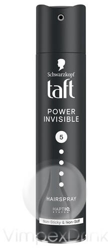 A Taft Invisible Power mega erős hajlakk Taft Power formulája hármas hatással segíti a hajformázást - nem ragad, nem nehezíti el a hajat és könnyen kifésülhető. A speciális erősítő formula láthatatlan fixálást nyújt, nem feszíti meg a tincseket és nem nehezíti el a hajat, miközben segít megvédeni a hajat a kiszáradástól.