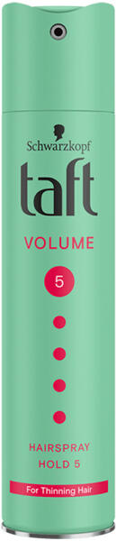 A Taft True Volume dúsító hatású mega erős hajlakk formulája milliónyi kollagénnel és volumennövelő molekulákkal gazdagítva biztosítja a fantasztikus dússágot. Hosszantartó tartás ragadás és maradványok nélkül. Segít védeni a hajat a kiszáradástól, és nem nehezíti el azt. A speciális erősítő formula tartást biztosít a hajnak, és segít megvédeni azt az UV sugaraktól. Hosszantartó fantasztikus dússág - mega erős hajlakk.