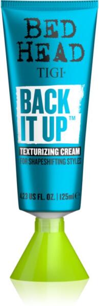 TIGI Back It Up Texturizing Cream, 125 ml, Krémek és gélek hajra nőknek, Az azonnali adag intenzív hidratálásról és táplálásról a remek TIGI Back It Up Texturizing Cream öblítésmentes hajápoló gondoskodik. Mindent megad a hajának, amire a hajmosás után szüksége van, anélkül, hogy a szükségesnél több időt kellene a fürdőszobában töltenie. Kisimítja a hajat, és helyreállítja természetes fényét és szerkezetének épségét. Támogatja a regenerálódást és hozzájárul a könnyebb kifésülhetőséghez. Mindezt egyszerűen, gyorsan és öblítés nélkül. Csak vigye fel, oszlassa el vagy fésülje át, és ezzel gondoskodik a haja szépségéről és egészségéről. Próbálja ki ezt az öblítésmentes hajápolót, és fedezze fel a haj regenerálásának egyszerű és gyors módját, amely számos egyéb előnnyel jár. Használata: Vigye fel a frissen mosott és törülköző száraz hajra. Ne öblítse le. Formázza a haját a szokásos módon.