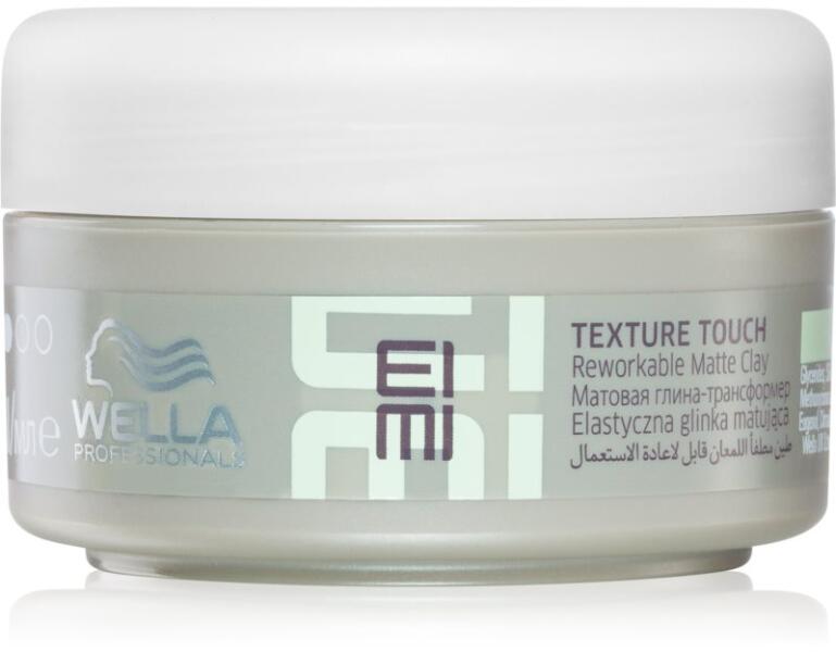Wella Professionals Eimi Texture Touch, 75 ml, Hajformázó agyag nőknek, Szeretne új dimenziót adni a frizurájának, és a saját ízlése szerint formázni? A minőségi Wella Professionals Eimi Texture Touch hajformázó termék pontosan ebben segít. Lehetővé teszi, hogy kihangsúlyozza hajának természetes struktúráját, formát és tartást adjon neki, és olyan tökéletes frizurát készítsen, mint egy profi, otthonának kényelmében. Próbálja ki ezt a hajformázó terméket, és hagyja, hogy kiemelje és hosszú időre fixálja a frizuráját. Tulajdonságok: természetesen fixál matt hatás nem nehezíti el a hajat Használata: Vigye fel a száraz hajra és formázza azt szükség szerint.